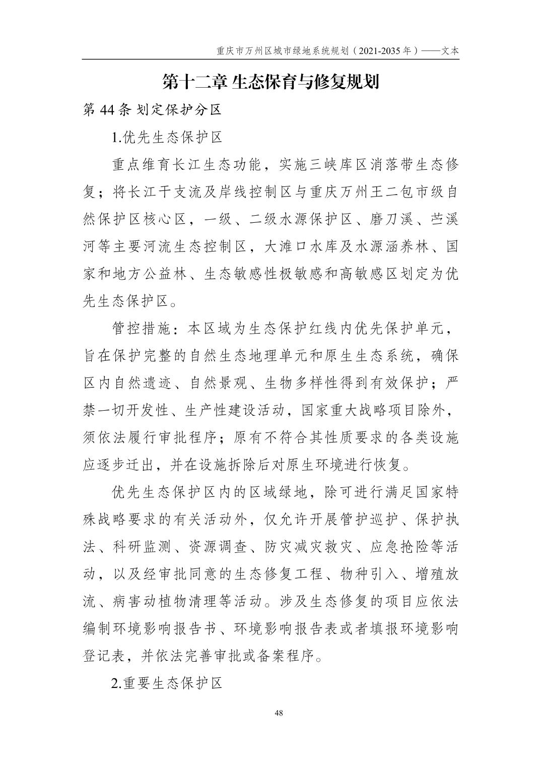 關于印發《重慶市萬州區城市綠地系統規劃(2021—2035年)》的通知